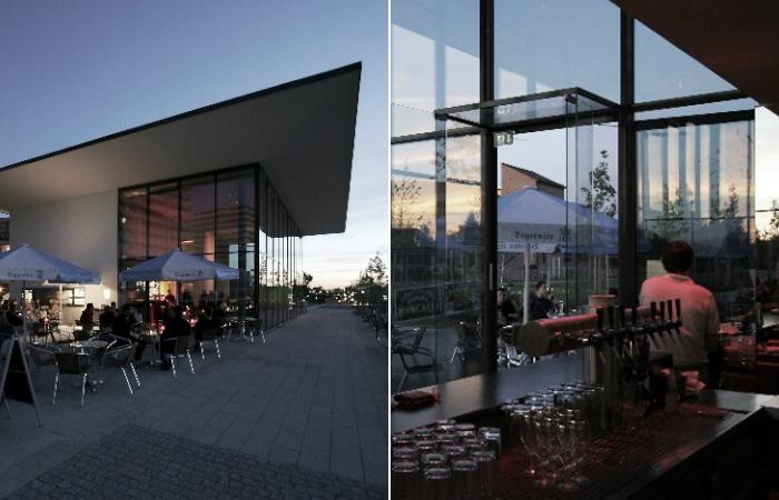 Das von Kiessler + Partner geplante Cafe im Petuelpark entstand zentral am Kreuzungspunkt zweier Hauptwege aus den Stadtteilen Milbertshofen und Schwabing. Der schlichte Gebäudecubus ist Cafe, Treffpunkt und Kunstforum zugleich und dank seines auskragenden Dachs weithin sichtbar. Ein Multifunktionsraum im grünen Band über den Mittleren Ring.